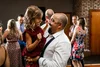 bride and groom embracing during ceremony at the Chicago Botanic Garden